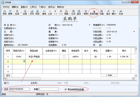 扫描条码快速录入商品