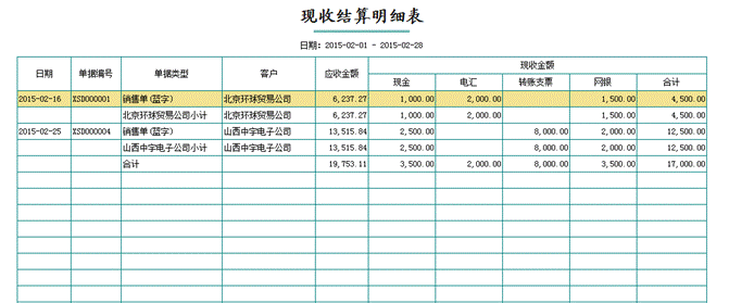 优化采购单、销售单上的现付、现收功能,支持录入多个结算方式,并在《现收结算明细表》、《现付结算明细表》中汇总统计各个结算方式下的现收现付金额。